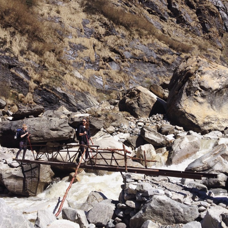 And find them I did! It took some patience (six days of walking through the jungle and getting up at sunset because the chances of any view were best then), some sore legs turned into iron leg muscles (nepali flat became a running gag – the trail went straight up just to go straight back down again around the corner, and after an adventurous suspension bridge straigth back up again), a lot if indifference towards your sleeping arrangements (most guesthouses were supergrose), but on the fifth day we finally were rewarded in Tadapani with a morning view of Annapurna South.