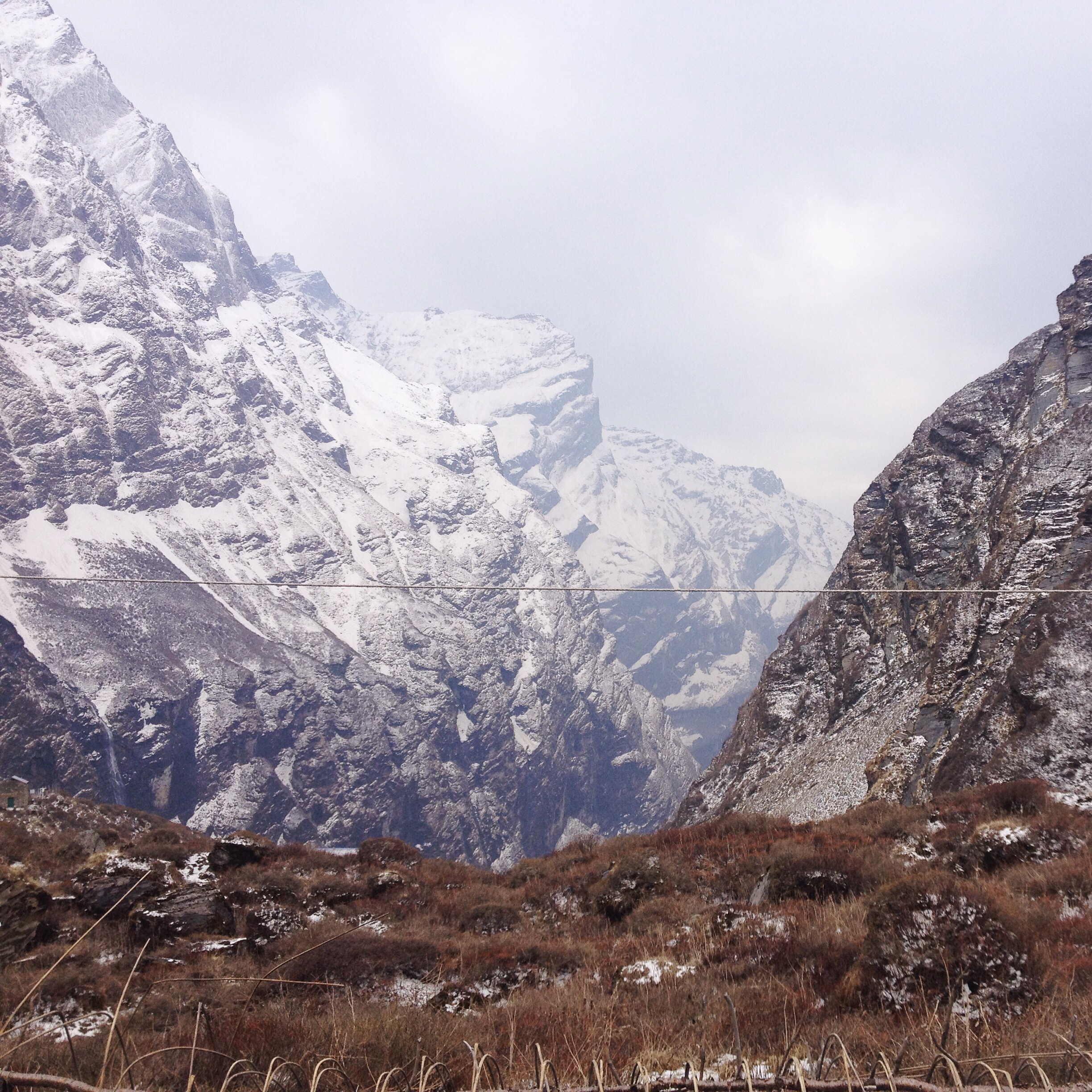 A first highlight we reached at 3700 meters: How beautiful was the view from Machapuchare Basecamp. I could have sat on the porch of our guesthouse forever just watching the everchanging weather, the steep slopes, the peaks of Mt. Fishtail and its neighbours emerging from the clouds and hiding again.