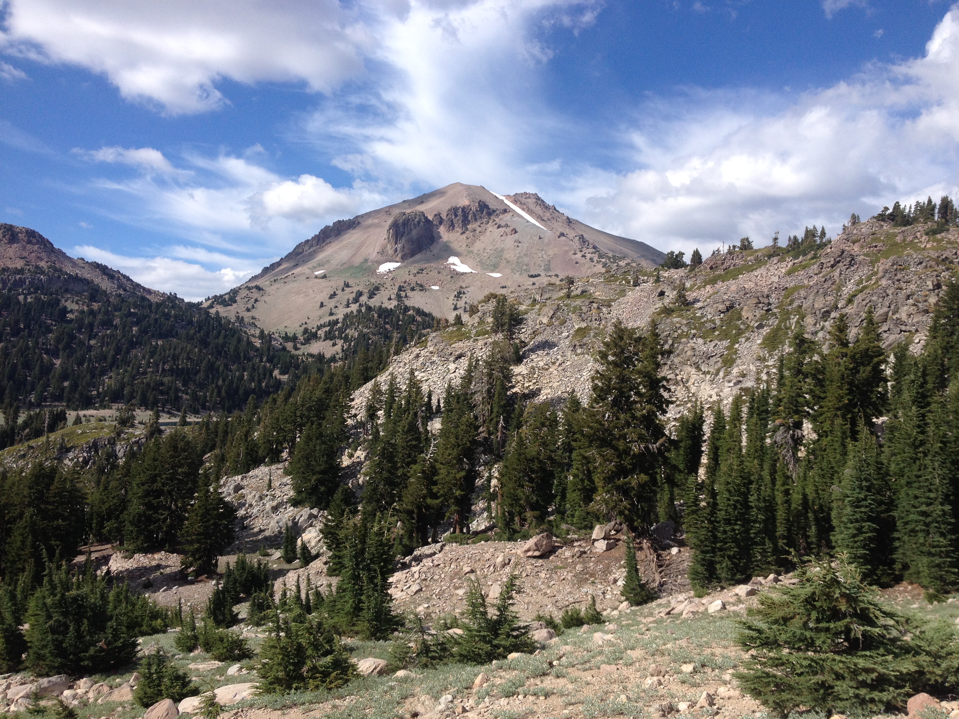 Lassen peak is impressive. Its white-greyish peak visible from the park road, towering above the nationalpark that it lent its name to. It is 3189 meters (10457 ft) high and the view from up there is spectacular. And if that was not reason enough to attempt this peak, it is probably also gonna be one of the easiest 3000-meter-peaks you’ll ever climb. The paved park road will take you up to the trailhead which is located a convenient 2.5 miles from the peak at an elevation of 2591 meters – leaving you with a humble 500-something meters of altitude gain to manage.