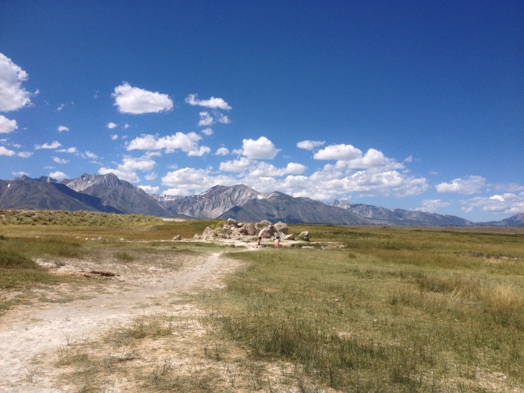 A little drive to the north of Mammoth Lakes to the little town of Bridgeport takes you to the Tavertine Hot Springs. Turn right just after the ranger station and follow the dirt road winding it’s way up into the hills. You’ll eventually reach a parking lot with a little outhouse. A trail leads you over a little hill and there you’ll find the Tavertine Hot Springs, which consist of five pools of differently temperatured water, ranging from very hot, to mildly cool. I loved these hot springs soaking away five days worth of Yosemite camping grime and enjoyed chatting with some fellow hot-springers. Be aware though: You might wear a swim suit, but locals enjoy their hot springs nude.