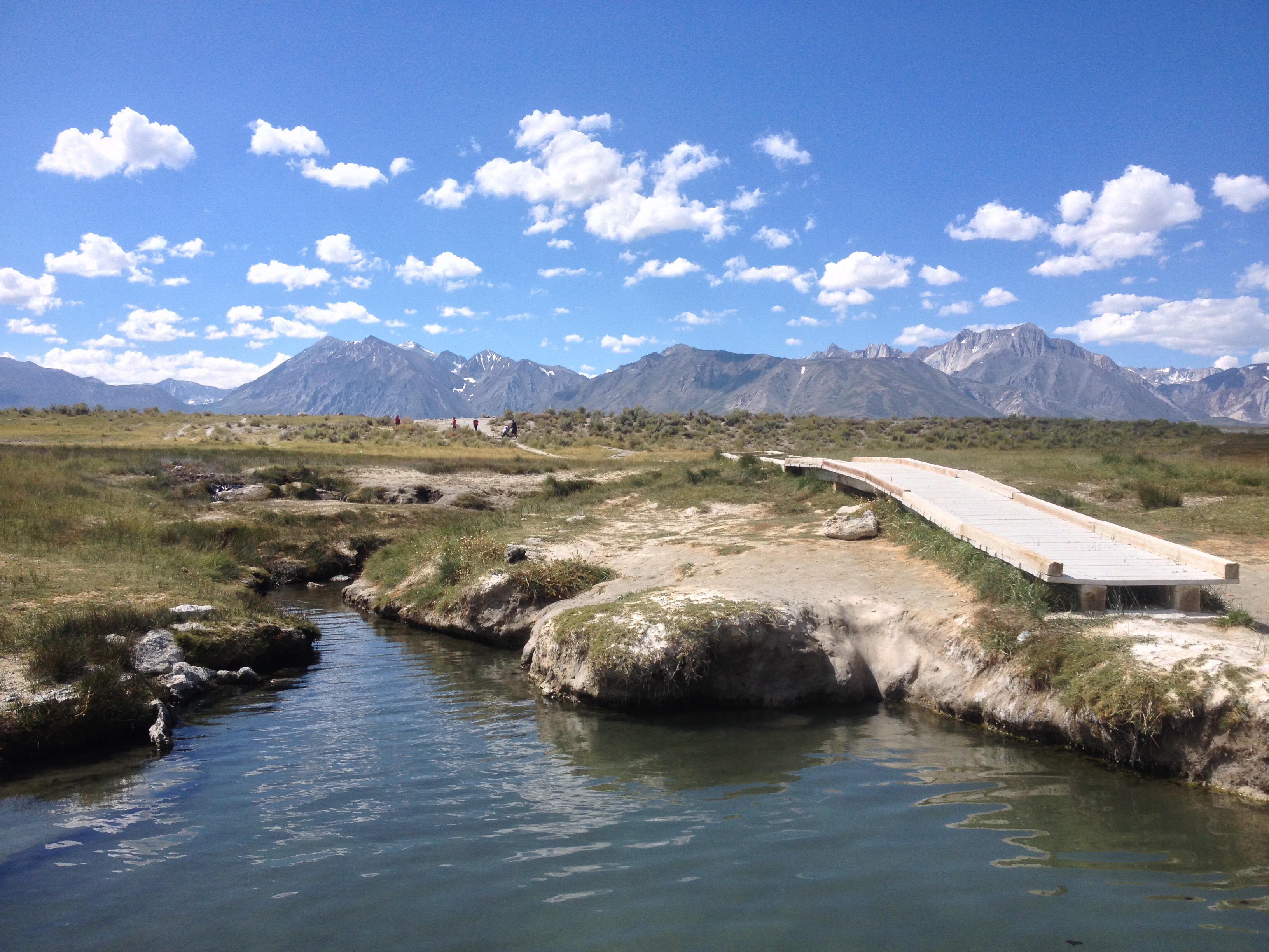 My favourite hot springs both location and visitor wise. The hot springs are a bit hard to find. From the 395 turn right onto Benton Rd, then turn right onto a dirt road after the third cattle grid. The turn-off is just past a little hill, there is no sign. Keep driving on the dirt road until you reach a parking lot. A wooden pier leads you down the hot springs, which consist of some three spacious pools. A lot of people visit the pools, so expect to share the space. Everyone I met there was supernice and easy-going though, so I had a good time bathing and chatting with fellow travellers and locals alike.