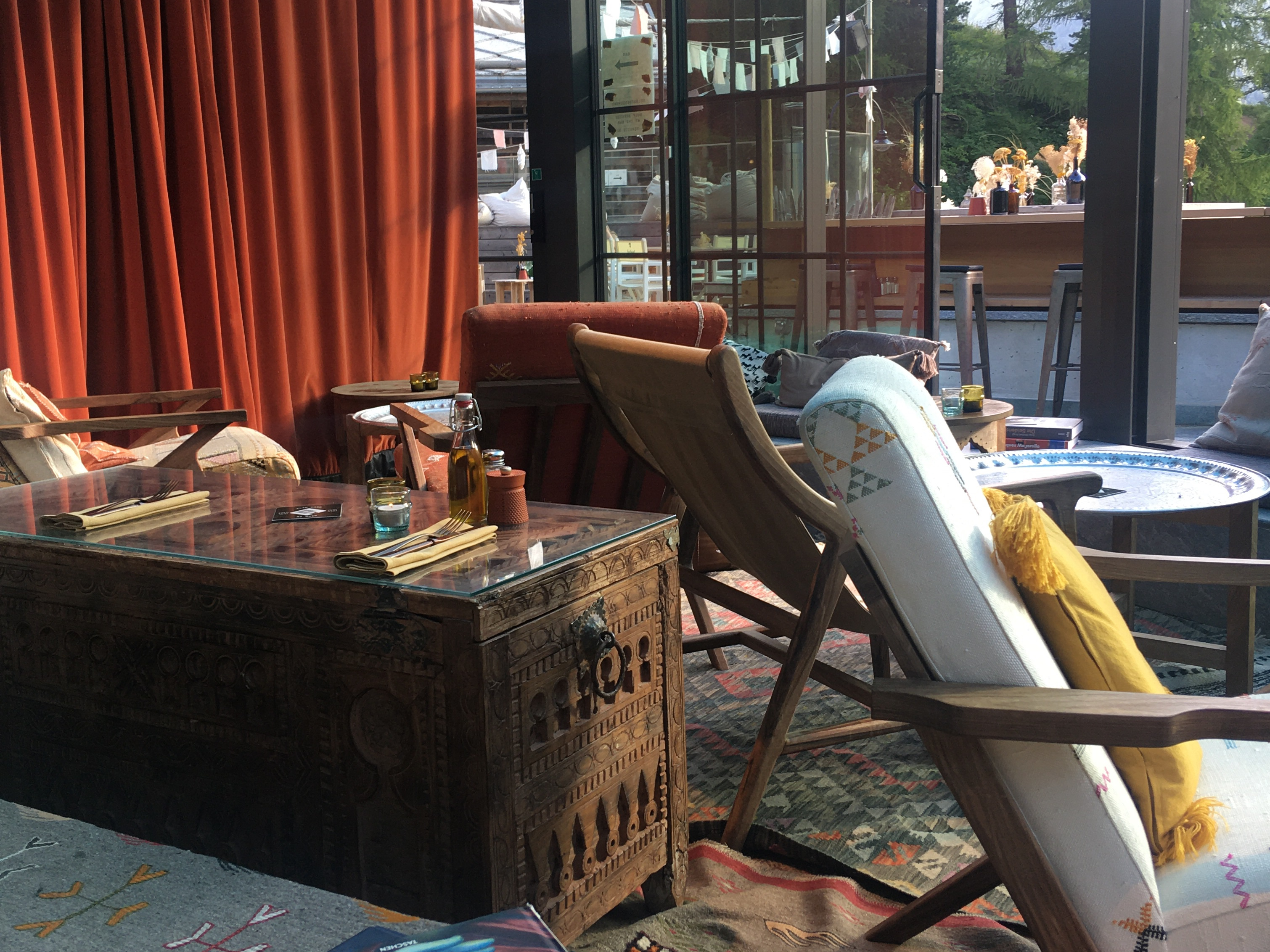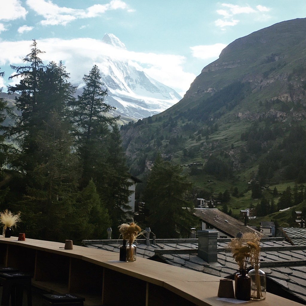 The first we got to enjoy was the hotel‘s spacious deck with views of the town and the Matterhorn. With a basil-gin-tonic as a welcome drink in our hands we took in the beautiful scenery. (Only a few hours later we would be back here to enjoy a lively and lovely acoustic show by Amistat as part of Zermatt Unplugged)